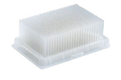 384-well plate with glass inserts for high-throughput assays. Precise, clean, and automation-ready.